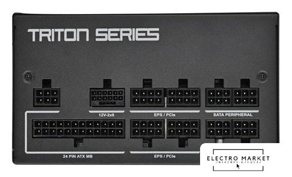 | Комплектация | - кабель питания для материнской платы 20+4 pin- два кабеля EPS/ATX 12V 8/4 pin- кабель 12V-2x6 Gen5- четыре кабеля PCIe 8/6 pin- восемь SATA-кабелей- четыре кабеля питания периферии 4 pin |