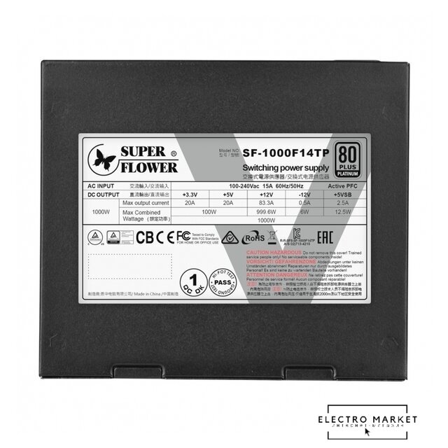 ATX 1250 Вт, активная PFC, платиновый сертификат, вентилятор 1x140 мм, модульные кабели, 1x 12В 104А, 1x PCIe Gen5