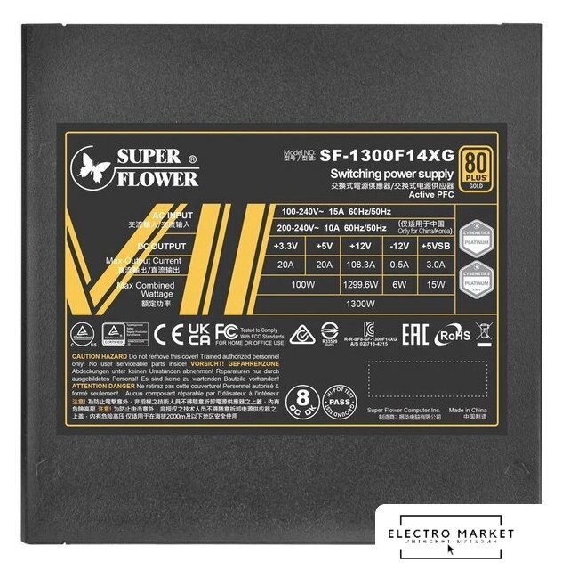 SFX 1000 Вт, активная PFC, платиновый сертификат, вентилятор 1x90 мм, модульные кабели, 1x 12В 83.3А, 1x PCIe Gen5