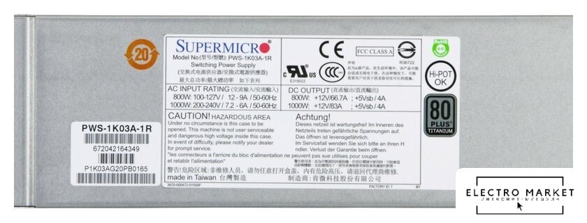 Изготовитель: Супер Микро Компьютер ИНК. 980 рок-Авеню, Сан-Хосе, ца 95131, США
