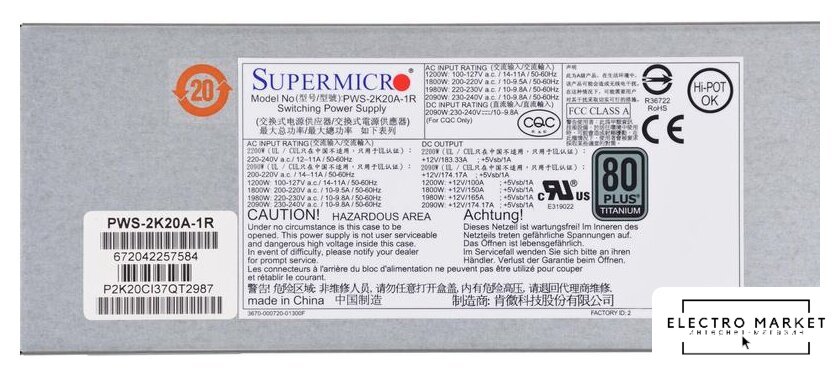 Изготовитель: Супер Микро Компьютер ИНК. 980 рок-Авеню, Сан-Хосе, ца 95131, США