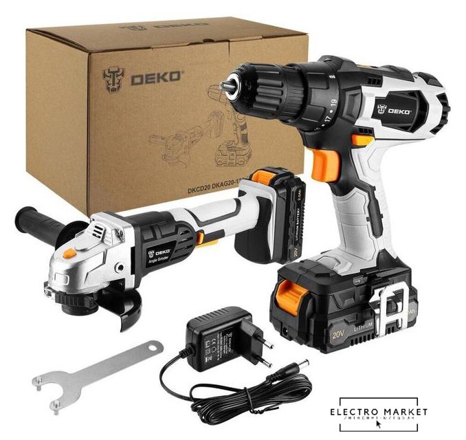 | Комплектация | - Дрель-шуруповерт;- Углошлифовальная машина;- Вспомогательная ручка;- Ключ;- Батарея - 2 шт;- Зарядное устройство;- Инструкция;- Коробка. |