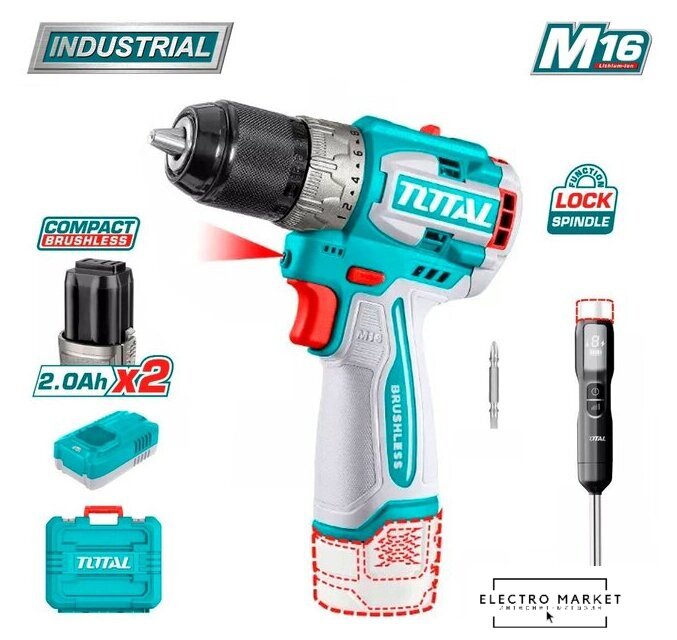 Комплектация | - Дрель-шуруповерт TDLI16681 - 1 шт.- Аккумулятор TFBLI1620 2,0 А*ч - 2 шт.- Зарядное устройство TFCLI1613 - 1 шт.- Двухсторонняя бита - 1 шт.- Аккумуляторный погружной блендер TOTAL TJB047K - 1 шт.- Кейс |
