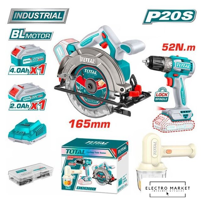 | Комплектация | - Циркулярная пила TSLI1652 - 1 шт.- Бесщеточная дрель-шуруповерт TDLI204531 - 1 шт.- Аккумуляторный миксер TMK019N - 1 шт.- Аккумулятор TFBLI20021 4,0 Ач - 1 шт.- Аккумулятор TFBLI20011 2,0 Ач - 1 шт.- Зарядное устройство TFCLI2001 - 1 шт.- Пильный диск 165 мм - 1 шт.- Шестигранный ключ - 1 шт.- Аксессуары - 47 шт.- Венчики для взбивания - 2 шт.- Стеклянная чаша для измельчения 0.3L - 1 шт.- USB кабель для зарядки миксера - 1 шт.- Коробка |
