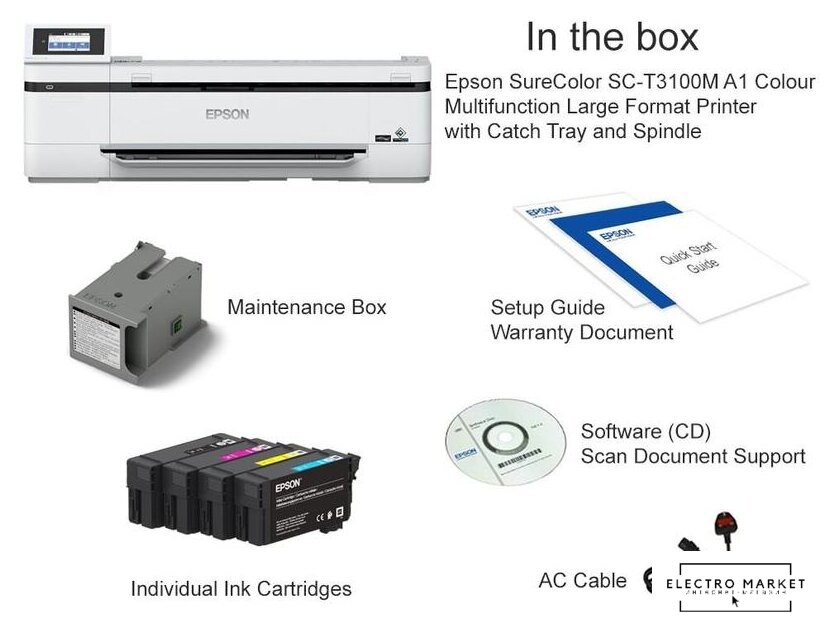 Комплектация | МФУCD с программным обеспечением и драйверамиКабель питанияДержатель напечатанных листов А3-А4Руководство по установкеКомплект CMYK-картриджейЁмкость для отработанных чернил |
