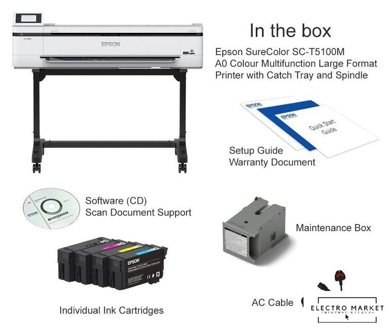 | Комплектация | МФУПодставка на 36”CD с программным обеспечением и драйверами.Кабель питанияДержатель напечатанных листов А3-А4Руководство по установкеКомплект CMYK-картриджейЁмкость для отработанных чернил |