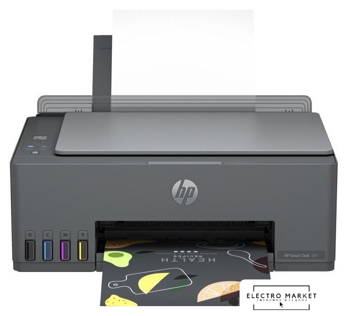 Комплектация | МФУ HP Smart Tank 581; бутылочка с оригинальными черными чернилами HP GT53XL, 135 мл (1VV24A); бутылочка с оригинальными голубыми чернилами HP GT52, 50 мл (6ZE03A); бутылочка с оригинальными пурпурными чернилами HP GT52, 50 мл (6ZE04A); бутылочка с оригинальными желтыми чернилами HP GT52, 50 мл (6ZE05A); оригинальная черная печатающая головка HP (M0H50A); оригинальная трехцветная печатающая головка HP (6ZA18AE); руководство по установке; справочное руководство; листовка о безопасном использовании струйного картриджа; листовка с нормативными требованиями; листовка с условиями гарантии; кабель питания; |