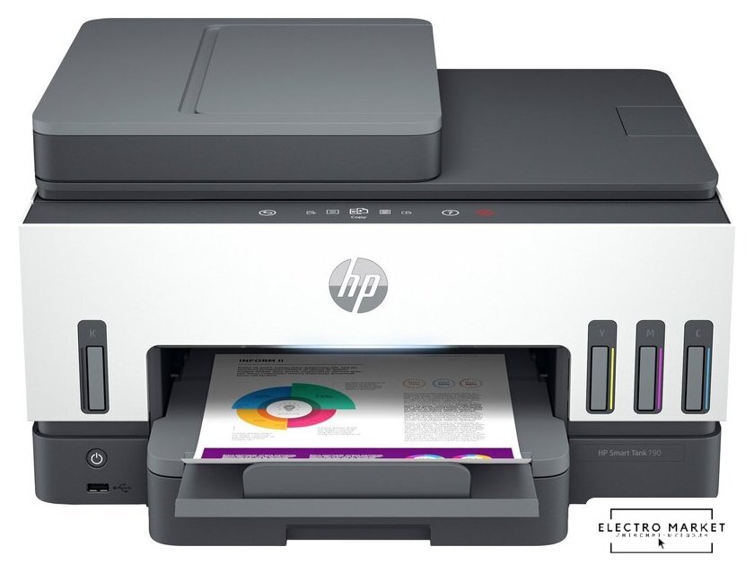 Комплектация | МФУ HP Smart Tank 790; 3 бутылочки с оригинальными черными чернилами HP GT53XL (135 мл); бутылочка с оригинальными голубыми чернилами HP GT52; бутылочка с оригинальными пурпурными чернилами HP GT52; бутылочка с оригинальными желтыми чернилами HP GT52; кабель питания; PHA; руководство по установке; справочное руководство; листовка о безопасности при использовании чернил; листовки с нормативными требованиями; листовки с условиями гарантии |