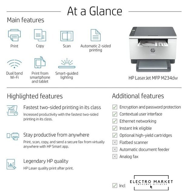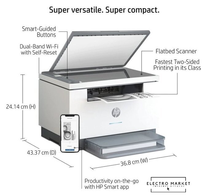 МФУ, лазерный, ширина бумаги до 356 мм, черно-белый, формат A4 (210x297 мм), скорость ч/б печати 29 стр/мин, разрешение 600 dpi, LAN, Wi-Fi