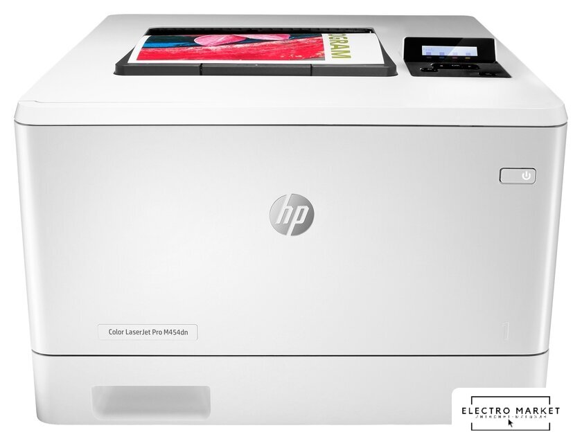 | Комплектация | HP Color LaserJet Pro M454dn; 4 предустановленных пробных тонер-картриджа HP LaserJet (черный, голубой, пурпурный, желтый: 1200 страниц); документация в комплекте (руководство по началу работы, плакат с инструкциями по установке); листовка с нормативными требованиями; кабель питания |