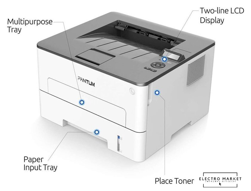 принтер, лазерный, черно-белый, формат A4 (210x297 мм), скорость ч/б печати 40 стр/мин, разрешение 1200 dpi, LAN