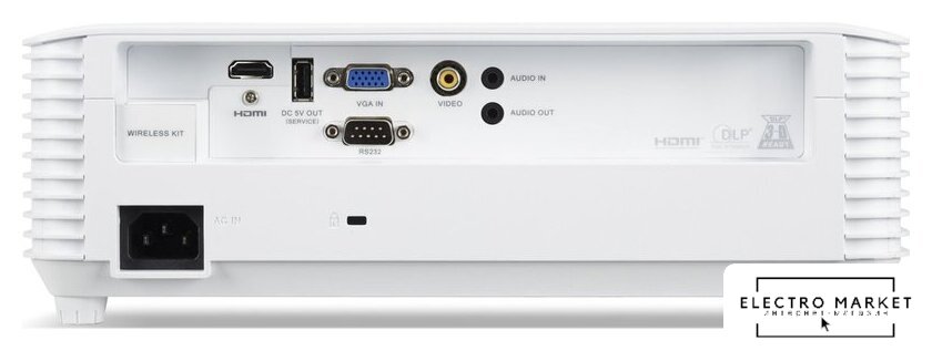 презентационный, матрица DLP, WVGA (854x480), ламповый, яркость 3500 ANSI лм, контраст 22000:1, расстояние 0.6-1.9 м, экран 40-300"