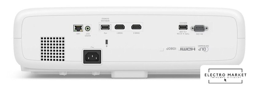 матрица DLP, UHD (3840x2160), ламповый, яркость 3600 ANSI лм, контраст 10000:1, расстояние 1.3-8 м, экран 37-300"