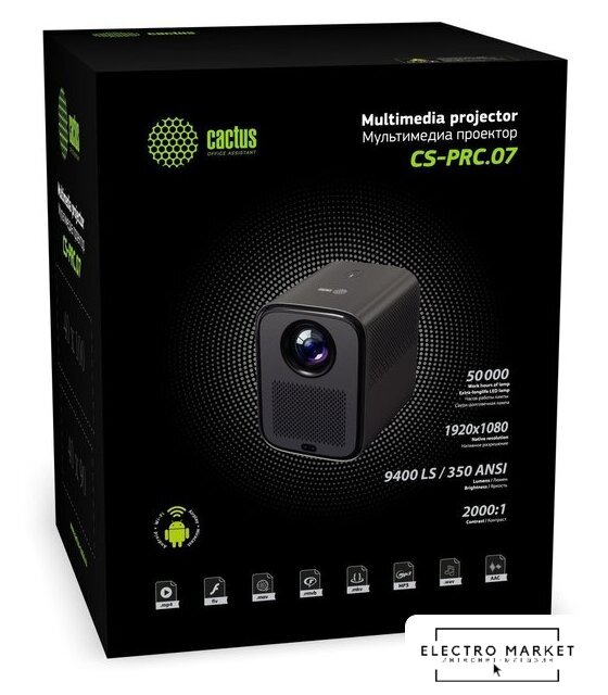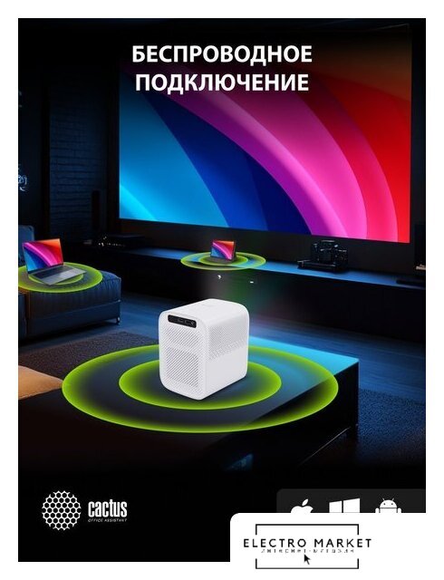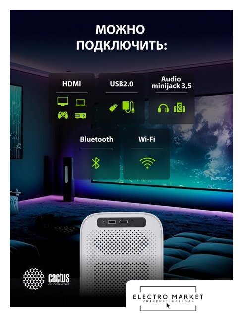 для домашнего кинотеатра, матрица LCD, FullHD (1920x1080), светодиодный, яркость 450 ANSI лм, контраст 2000:1, расстояние 1.2-3.6 м, экран 40-120", Wi-Fi, Airplay