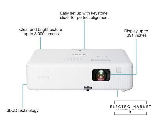 портативный/презентационный, матрица DLP, WXGA (1280x800), ламповый, яркость 3800 ANSI лм, контраст 25000:1, расстояние 1-12 м, экран 32.2-299.5"