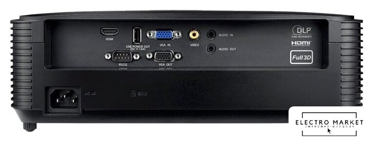 презентационный, матрица DLP, WXGA (1280x800), ламповый, яркость 3800 ANSI лм, контраст 25000:1, расстояние 0.4-3.4 м, экран 35.6-303"