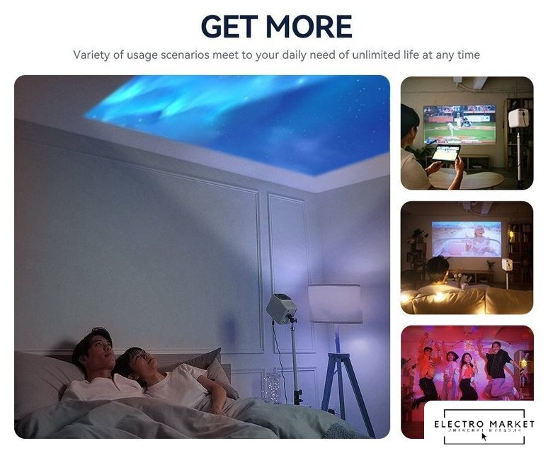 для домашнего кинотеатра, матрица LCD, FullHD (1920x1080), светодиодный, яркость 450 ANSI лм, контраст 2000:1, расстояние 1.2-3.6 м, экран 40-120", Wi-Fi, Airplay