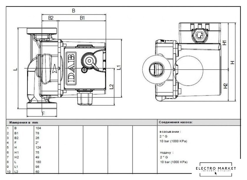 циркуляционный, 0.7 м³/ч, напор 1.2 м, давление 10 бар