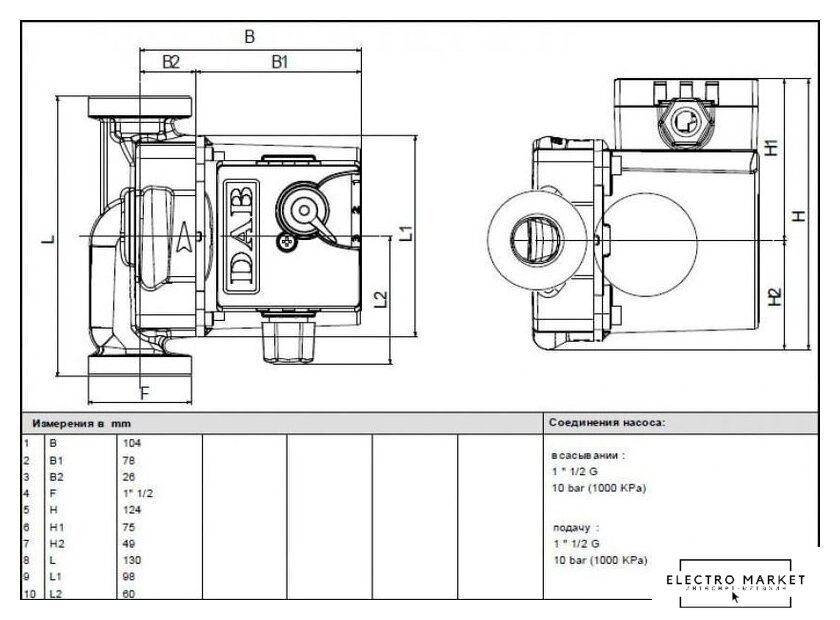 циркуляционный, 2.9 м³/ч, напор 4.5 м, давление 10 бар