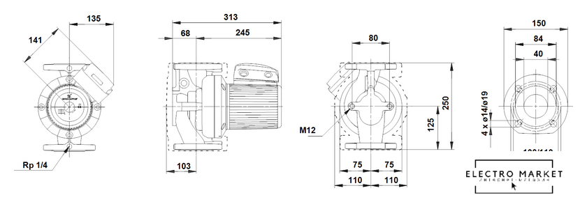 циркуляционный, 12.9 м³/ч, напор 12 м, давление 10.2 бар