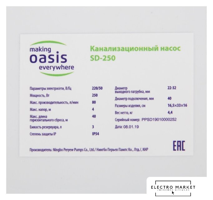 | Температура перекачиваемой жидкости | 0 — 40 C° |
