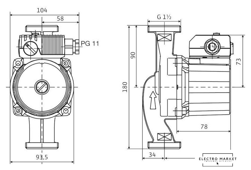 циркуляционный, 9.6 м³/ч, напор 12 м, давление 10 бар