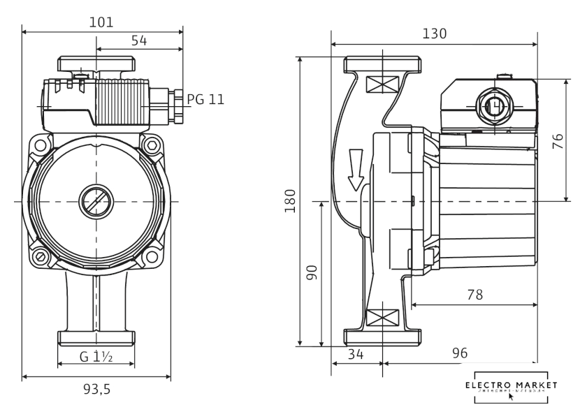 циркуляционный, 3.6 м³/ч, напор 6.9 м, давление 10 бар