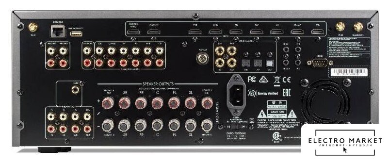 стереоресивер, 2 канала, 200 Вт/6 Ом, выходы 4.2, КНИ 0.08%, SNR 106 дБ, USB, LAN, BT, Wi-Fi