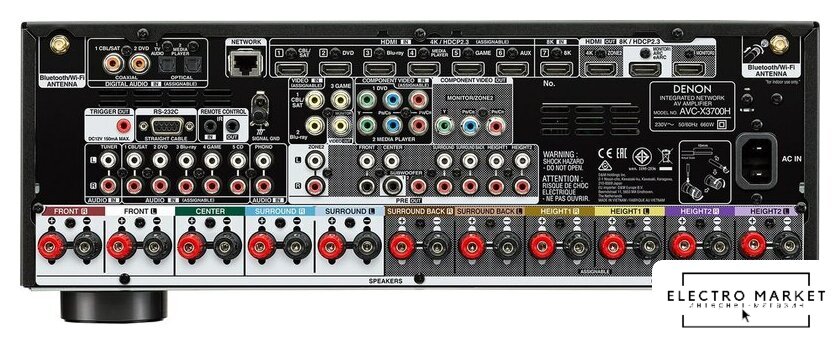 AV ресивер, 7 каналов, 175 Вт/6 Ом, выходы 7.2, КНИ 0.08%, SNR 106 дБ, USB, LAN, BT, Wi-Fi