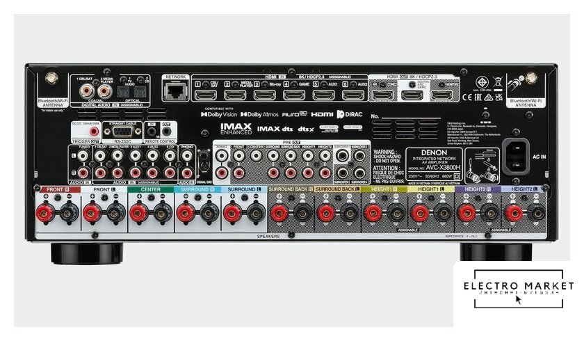 AV ресивер, 7 каналов, 100 Вт/8 Ом, 140 Вт/6 Ом, выходы 7.1, КНИ 0.03%, SNR 100 дБ, USB, LAN, BT, Wi-Fi