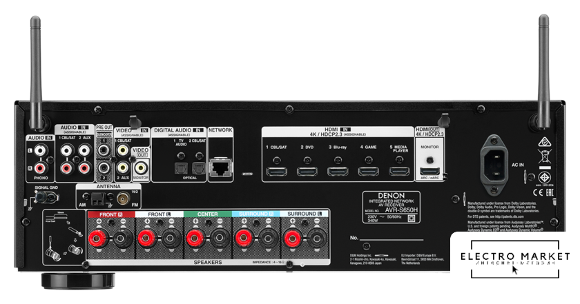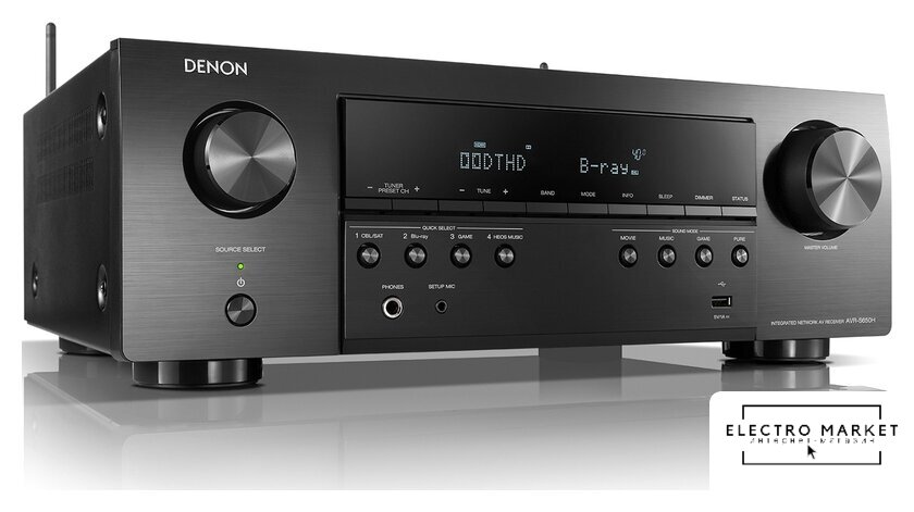 AV ресивер, 2 канала, 100 Вт/8 Ом, 120 Вт/6 Ом, выходы 2.2, КНИ 0.03%, SNR 98 дБ, USB, LAN, BT, Wi-Fi