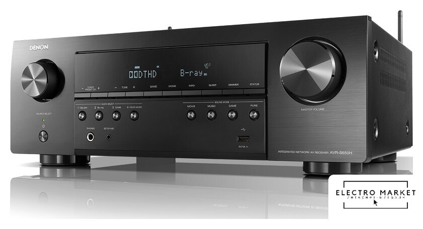 AV ресивер, 7 каналов, 80 Вт/8 Ом, 120 Вт/6 Ом, выходы 7.2, КНИ 0.03%, SNR 74 дБ, USB, LAN, BT, Wi-Fi