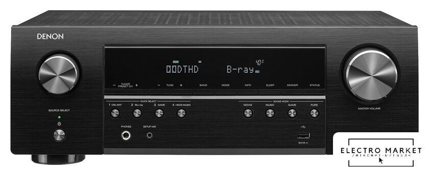 AV ресивер, 5 каналов, 70 Вт/8 Ом, 90 Вт/6 Ом, выходы 5.2, КНИ 0.08%, SNR 98 дБ, USB, BT