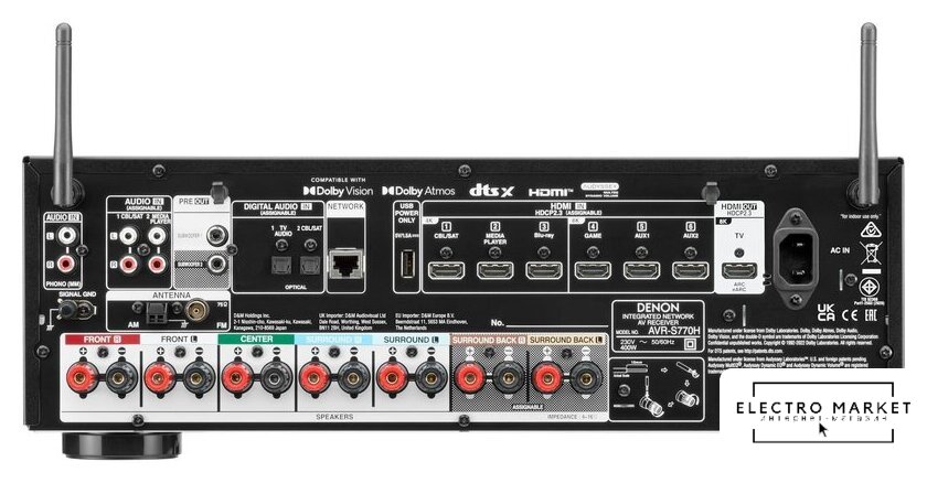 AV ресивер, 5 каналов, 135 Вт/6 Ом, выходы 5.2, КНИ 0.08%, SNR 109 дБ, BT