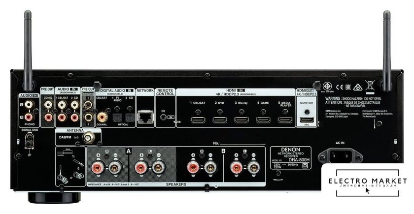 AV ресивер, 7 каналов, 50 Вт/8 Ом, 70 Вт/6 Ом, выходы 7.2, КНИ 0.08%, SNR 98 дБ, USB, LAN, BT, Wi-Fi