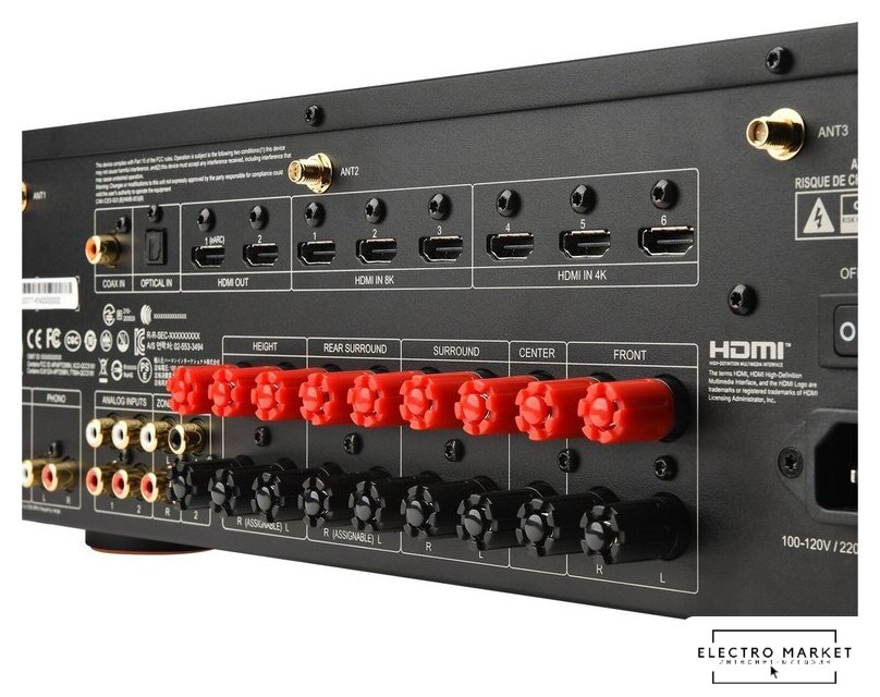 AV усилитель, 13 каналов, 150 Вт/8 Ом, 190 Вт/6 Ом, выходы 13.2, КНИ 0.005%, SNR 102 дБ, USB, LAN, BT, Wi-Fi