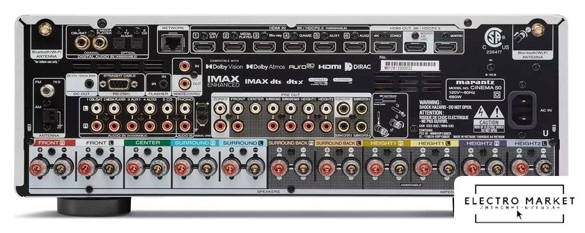 AV ресивер, 9 каналов, 120 Вт/8 Ом, 180 Вт/6 Ом, выходы 9.2, КНИ 0.08%, SNR 106 дБ, USB, LAN, BT, Wi-Fi