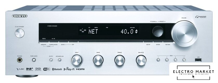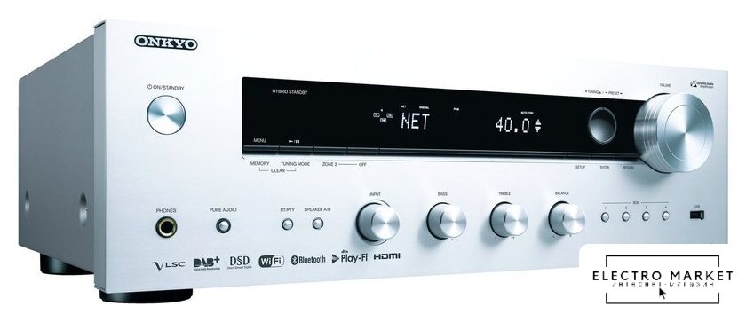 CD-ресивер, 2 канала, 40 Вт/8 Ом, 60 Вт/4 Ом, SNR 98 дБ, USB, LAN, BT, Wi-Fi