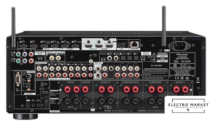 AV усилитель, 9 каналов, 125 Вт/8 Ом, 165 Вт/6 Ом, выходы 9.4/11.4, КНИ 0.005%, SNR 102 дБ, USB, LAN, BT, Wi-Fi