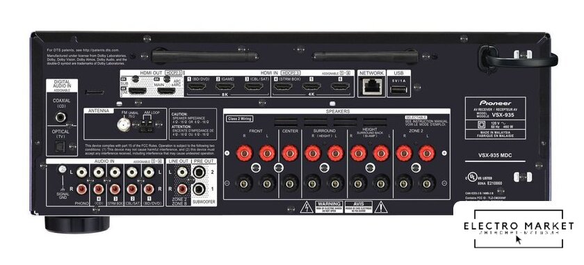 AV ресивер, 5 каналов, 50 Вт/8 Ом, 60 Вт/6 Ом, выходы 5.1, SNR 98 дБ, USB, LAN, BT, Wi-Fi