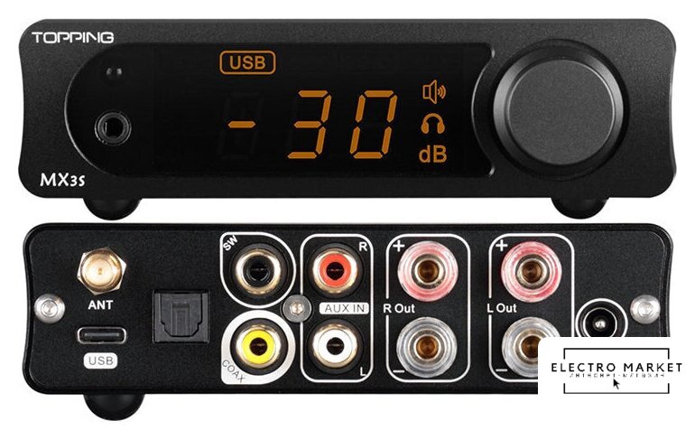 усилитель мощности, 2 канала, 30 Вт/8 Ом, 50 Вт/4 Ом, КНИ 0.1%, SNR 75 дБ, BT