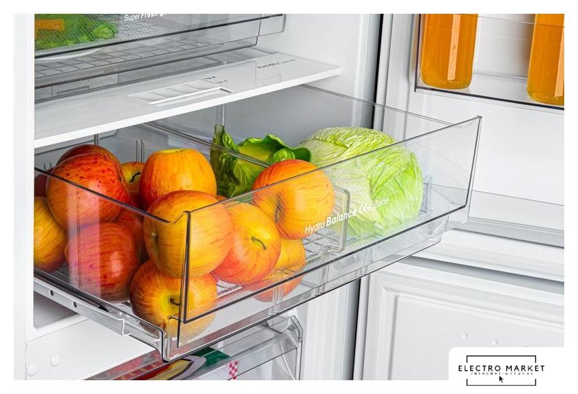 отдельностоящий, полный No Frost, электронное управление, класс A+, полезный объём: 365 л (277 + 88 л), инверторный компрессор, перенавешиваемые двери, лоток для яиц, 59.5x68.2x203 см, белый