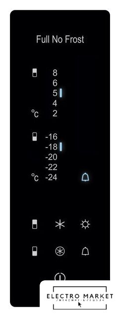 отдельностоящий, полный No Frost, электронное управление, класс A+, полезный объём: 348 л (254 + 94 л), зона свежести, перенавешиваемые двери, автодоводчик дверей, складная полка, выдвижной/подвесной контейнер, подставка-лоток для бутылок, лоток для яиц, масленка, 59.5x66x206.8 см, черный металлик