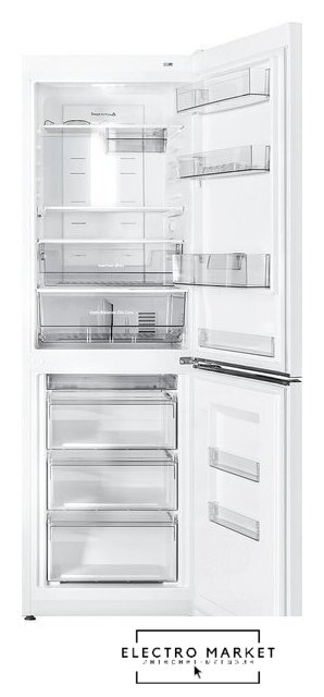 отдельностоящий, полный No Frost, сенсорное управление, класс A+, полезный объём: 330 л (230 + 100 л), инверторный компрессор, зона свежести, перенавешиваемые двери, лоток для яиц, отделка: стекло, 60x65.8x195 см, белый