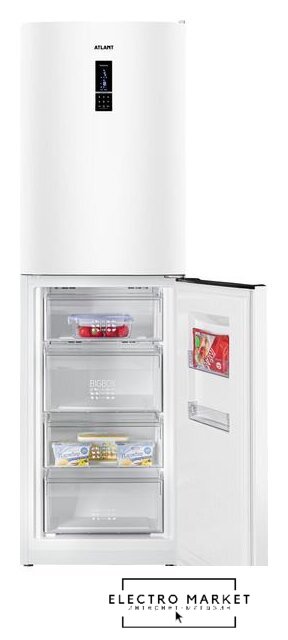 отдельностоящий, без No Frost, электронное управление, класс A+, полезный объём: 341 л (182 + 159 л), подставка-лоток для бутылок, лоток для яиц, 59.5x62.7x196.8 см, белый