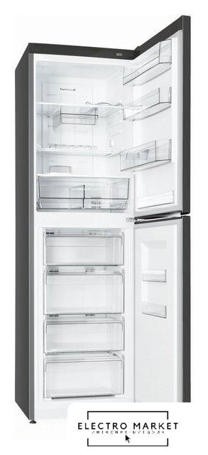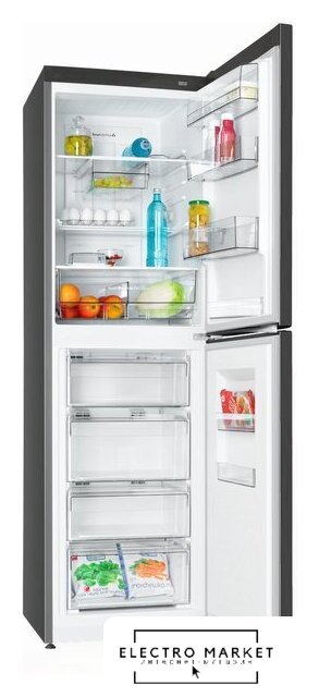 отдельностоящий, полный No Frost, электронное управление, класс A+ (277 + 107 л), инверторный компрессор, перенавешиваемые двери, нулевой зазор, лоток для яиц, 59.5x68.2x203 см, графит