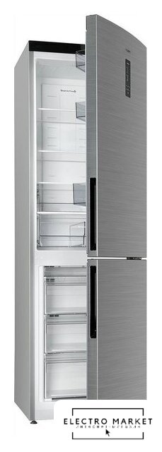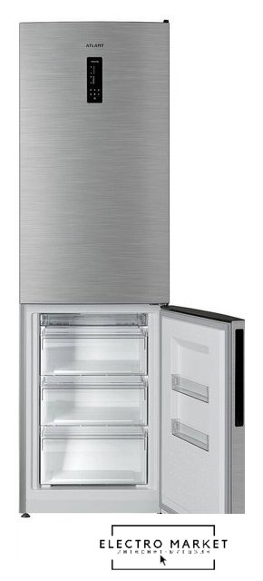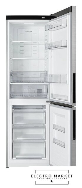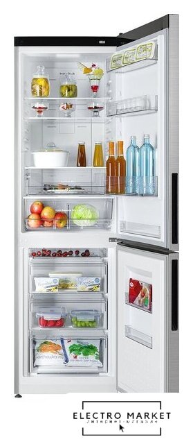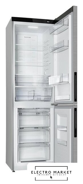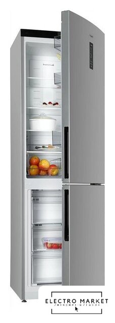отдельностоящий, без No Frost, электронное управление, класс A+, полезный объём: 370 л (251 + 119 л), зона свежести, перенавешиваемые двери, выдвижной/подвесной контейнер, лоток для яиц, 59.5x62.7x206.8 см, серебристый