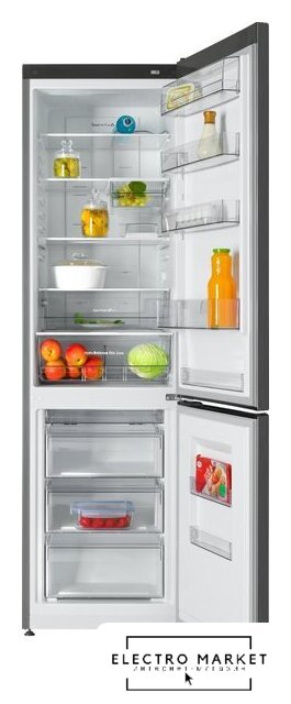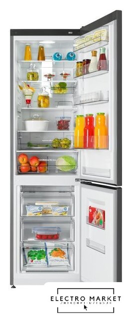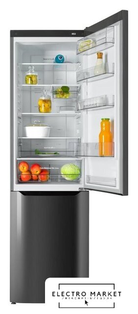 отдельностоящий, полный No Frost, электронное управление, класс A+, полезный объём: 357 л (211 + 125 л), зона свежести, перенавешиваемые двери, автодоводчик дверей, складная полка, полка для вина, выдвижной/подвесной контейнер, лоток для яиц, 59.5x66x206.8 см, антрацит