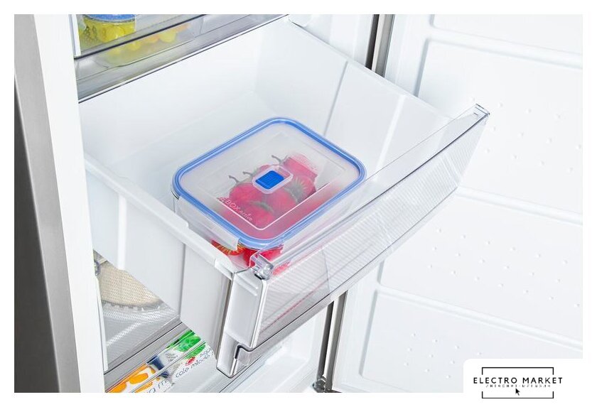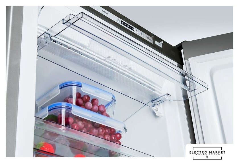 отдельностоящий, No Frost (морозильная камера), электронное управление, класс A+, полезный объём: 262 л, перенавешиваемые двери, 60x68.5x185 см, нержавеющая сталь