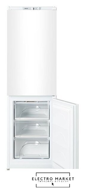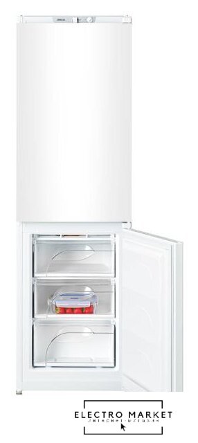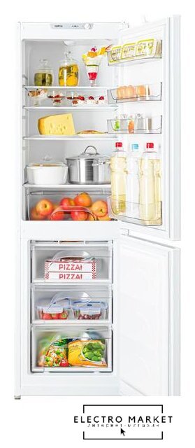 встраиваемый, без No Frost, электронное управление, класс A+, полезный объём: 250 л (185 + 65 л), перенавешиваемые двери, лоток для яиц, 54x54x178 см, белый